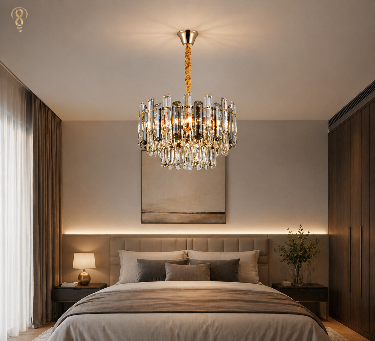 Este realizată din metal și cristal, iar combinația dintre acestea ajută la distribuirea luminii într-un mod uniform. Cristalele reflectă lumina și creează un efect vizual frumos, fără să fie prea puternic sau deranjant.