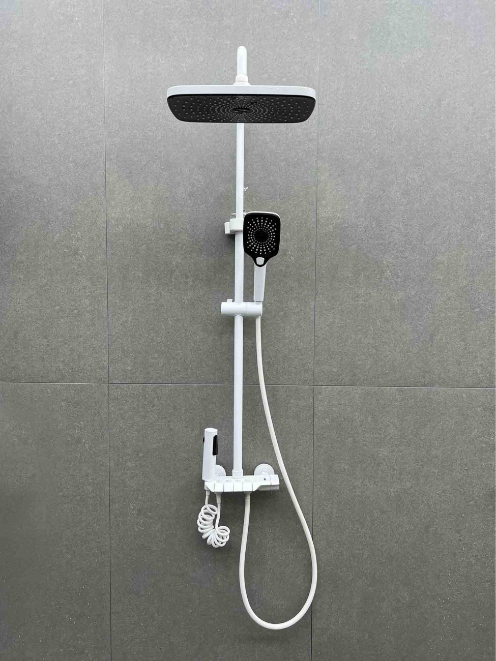 Coloana de dus alb SMK03W, cu baterie amestecatoare si montaj pe perete este supla, eleganta si confera acea imagine speciala pe care ti-o doresti de la o cabina de dus moderna.