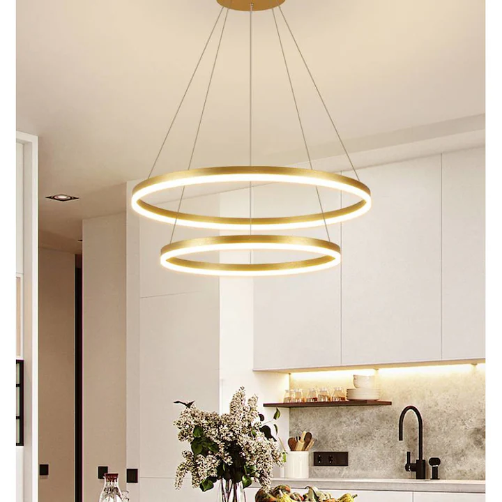 LUSTRA LED MINIMALIST RING CU TELECOMANDA GOLD LUMINA/RECE/CALDA/NEUTRA INTENSITATE REGLABILA – ILUMINAT CU LED PENTRU INTERIOR!