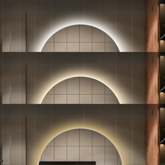 - Lumină LED integrată: Oglinda dispune de iluminare LED pe marginea sa, care oferă trei opțiuni de culoare a luminii – rece, caldă și neutră. Aceasta vă permite să ajustați lumina în funcție de preferințele dvs. personale și de nevoile de iluminare din momentul respectiv.