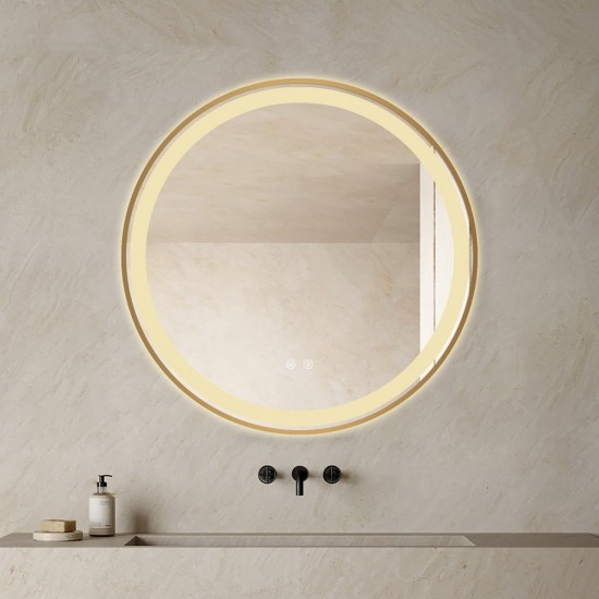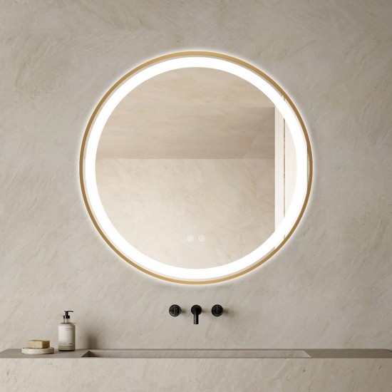 Oglindă Baie LED și Dezaburire Premium cu Senzor Touch, Lumina Rece, Caldă și Neutră, 70cm, rama Auriu