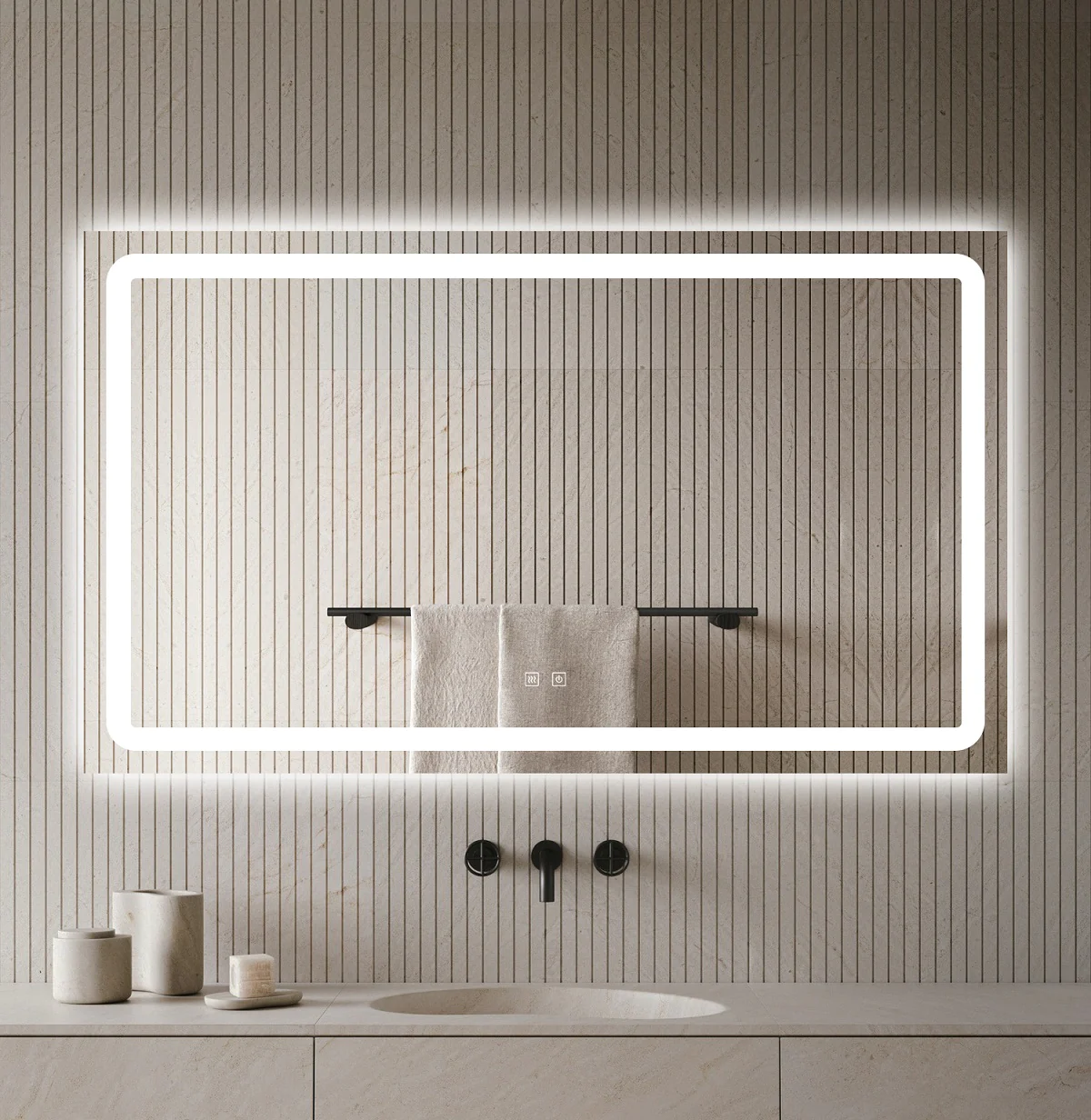 Senzorul touch facilitează controlul iluminării, permițându-vă să reglați intensitatea luminii sau să schimbați nuanța cu ușurință. Acest senzor touch face utilizarea oglinzii mai intuitivă și mai comodă, fiind suficient să atingeți oglinda pentru a o activa sau a o dezactiva.
