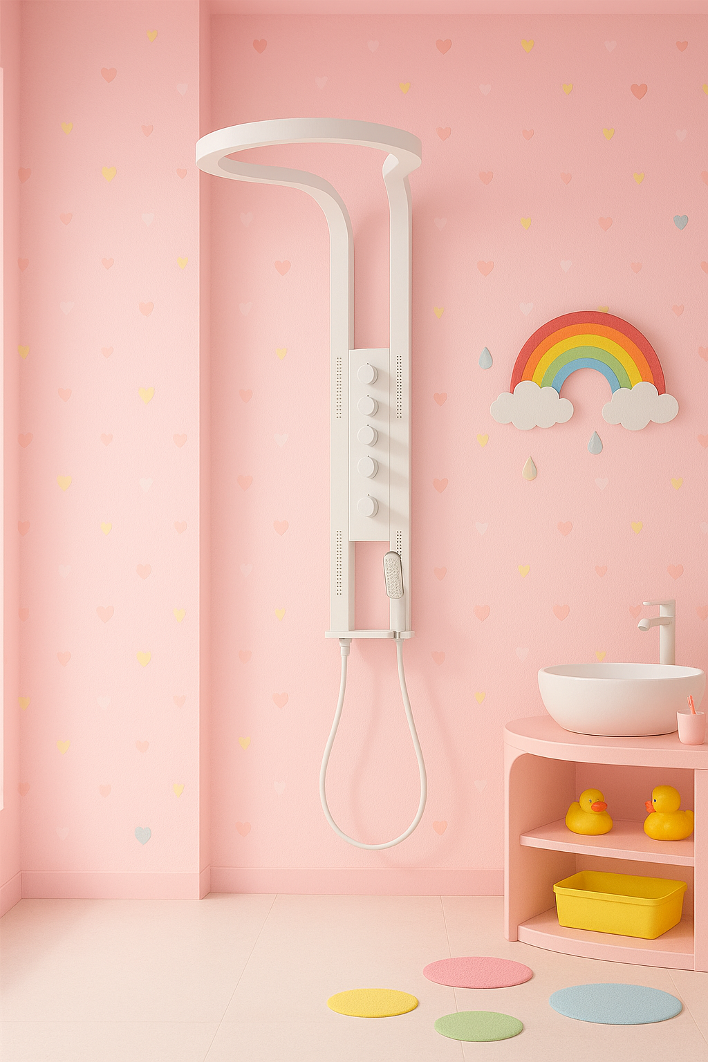 ✔ Pălărie de duș incorporată – acoperire largă pentru un duș uniform
